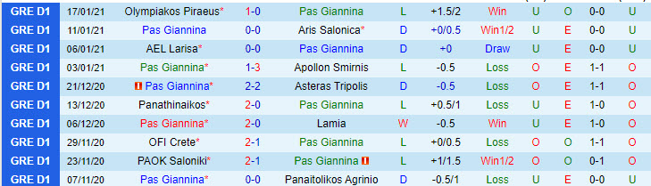 + Thống kê 10 trận gần nhất của PAS Giannina
