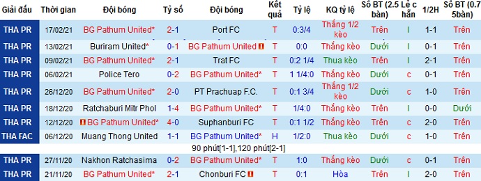 Sau trận thua trước Muang Thong tại FA Cup từ hồi đầu tháng 12 năm ngoái, Pathum United hiện vẫn đang duy trì được chuỗi 7 trận toàn thắng. Trên sân nhà Pathum United cũng đang bất bại trong cả 10 trận đấu từ đầu mùa giải, trong đó chỉ có đúng 1 trận hòa và cũng đang toàn thắng ở 5 trận gần nhất tại đây.