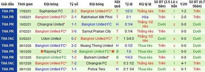 + Thống kê 10 trận gần nhất của Bangkok United