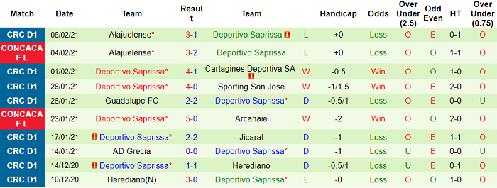- Thống kê 10 trận gần nhất của Saprissa