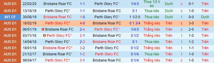+ Lịch sử đối đầu Perth Glory vs Brisbane Roar