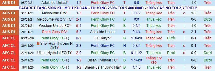 + Thống kê 10 trận gần nhất của Perth Glory