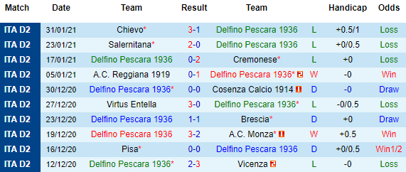 + Thống kê 10 trận gần nhất của Pescara
