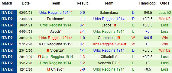 + Thống kê 10 trận gần nhất của Reggina