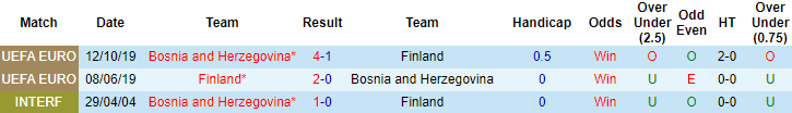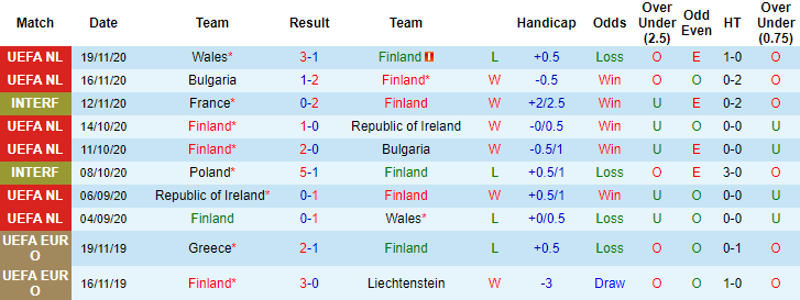 Tại vòng loại EURO 2020 diễn ra hồi tháng 6/2019, Phần Lan đã giành chiến thắng 2-0 khi tiếp đón Bosnia-Herzegovina trên sân nhà. Đáng chú ý, trước giờ bóng lăn trận đấu này, Phần Lan chấp -0 theo kèo châu Á. Trận đấu sắp tới Phần Lan tiếp tục được xếp chiếu trên với mức chấp theo handicap 0:0.