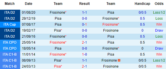 + Lịch sử đối đầu Pisa vs Frosinone