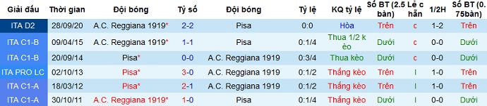 + Lịch sử đối đầu Pisa vs Reggiana