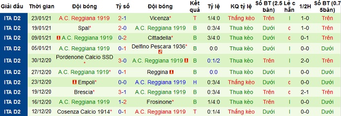 Sau 5 trận thua liên tiếp, Reggiana mới có được chiến thắng mới đây trước Vicenza ở vòng đấu gần nhất. Trên sân khách thành tích của Reggiana cũng khá tệ khi chỉ có được 1 trận hòa, 3 trận thua trong 4 lần du đấu gần nhất.