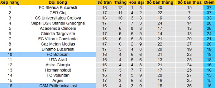 Trong khi đó Botosani cũng chỉ đang đứng thứ 10 trên bảng xếp hạng với 18 điểm sau 16 vòng đấu. Nằm trong nhóm các đội phải thi đấu giai đoạn hai trụ hạng, Botosani vẫn đang còn kém nhóm các đội có suất dự vòng chung kết 6 điểm.