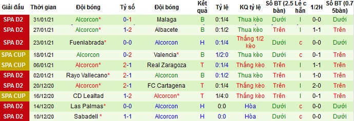 + Thống kê 10 trận gần nhất của Alcorcón