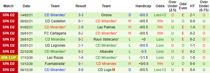 + Thống kê 10 trận gần nhất của Mirandes