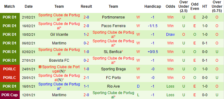 + Thống kê 10 trận gần nhất của Sporting Lisbon