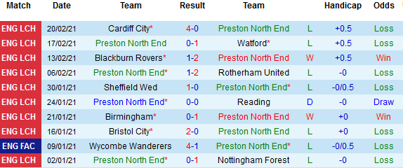 + Thống kê 10 trận gần nhất của Preston North End