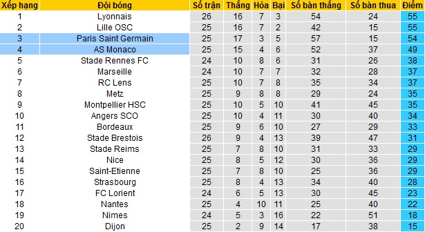 Trong khi đó đối thủ ở trận đấu tới AS Monaco lại đang đứng ngay sau PSG ở vị trí thứ tư. Tuy nhiên Monaco đang kém PSG tới 5 điểm, đồng thời lại hơn đội thứ 5 Rennes tới 11 điểm nên một suất trong Top 4 là tương đối chắc chắn. Chỉ có điều nếu muốn dự cúp C1 mùa sau, Monaco phải bắt buộc có mặt trong Top 3.