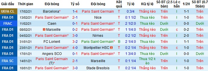 Kể từ sau trận thua khá bất ngờ trước Lorient, PSG đang toàn thắng trong cả 5 trận gần nhất trên mọi mặt trận. Thành tích sân nhà của đội bóng còn ấn tượng hơn khi đang sở hữu chuỗi 7 trận toàn thắng gần nhất.