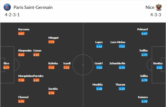 Đội hình dự kiến PSG vs Nice