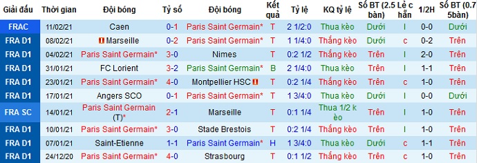 + Thống kê 10 trận gần nhất của PSG