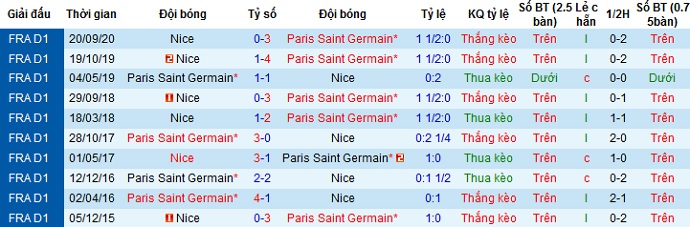 Rõ ràng cơ hội để Nice có điểm trên sân của PSG là gần như không có. Không những thế trong cả 6 chiến thắng gần đây của PSG trên sân nhà, chỉ có đúng một lần duy nhất cách biệt về tỷ số ít hơn 2 bàn. Bởi thế chọn cửa trên ở trận đấu này vẫn là an toàn và hợp lý hơn cả.