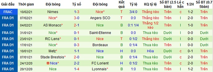 + Thống kê 10 trận gần nhất của Nice