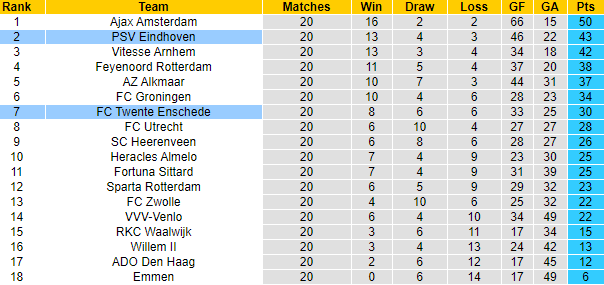 Twente đang có mặt trong top 7 và cũng muốn duy trì vị thế hiện tại để có suất play-off dự Europa League. Twente chỉ còn hơn 2 đối thủ phía sau có 2 điểm, cách biệt dễ bị san lấp. Vậy nên sẽ không dễ cho PSV Eindhoven có thể bỏ túi 3 điểm ở trận cầu ngày hôm nay.