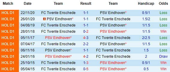 + Lịch sử đối đầu PSV vs Twente