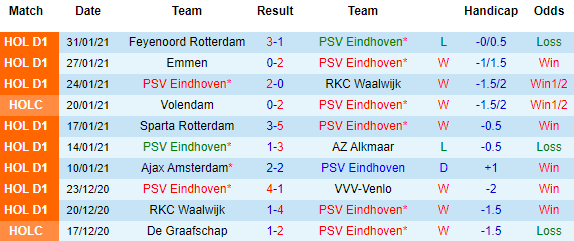 + Thống kê 10 trận gần nhất của PSV