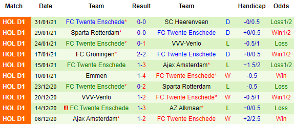 + Thống kê 10 trận gần nhất của Twente