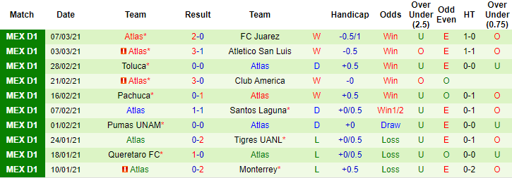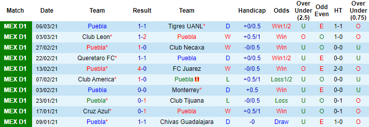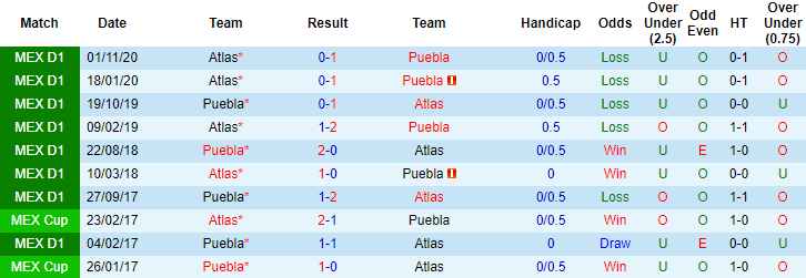 4 lần gần đây làm khách trên sân của Puebla, Club Atlas bất bại 3 trận với 2 chiến thắng và 1 trận hòa. Giai đoạn gần đây Club Atlas thi đấu vào phom, 7 trận vừa qua tại giải VĐQG Mexico họ thắng 5, hòa 2 và toàn thắng theo kèo châu Á. Trong khi đó Puebla không thắng 4 trên 6 trận sân nhà gần đây (thua 3, hòa 1).
