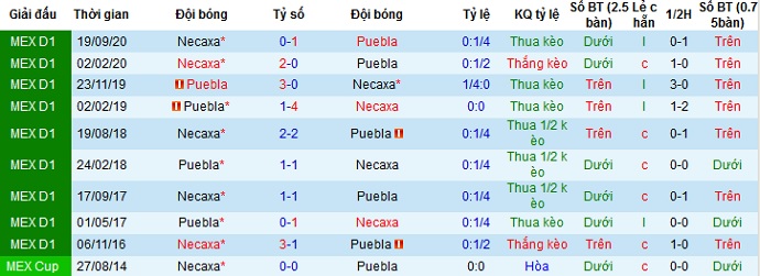 + Lịch sử đối đầu Puebla vs Necaxa