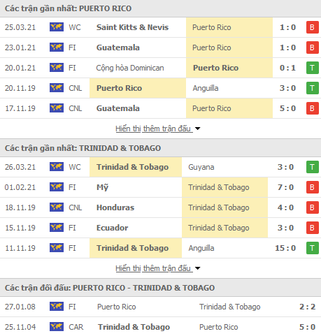 Phong độ và thống kê đối đầu gần đây Puerto Rico vs Trinidad & Tobago: