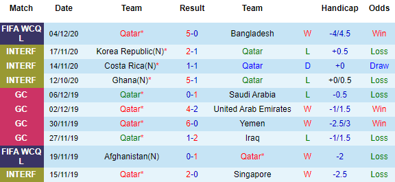 Ở trận cầu gần nhất, Qatar cho thấy sức mạnh khi đè bẹp Bangladesh hồi cuối năm 2020 tại vòng loại World Cup khu vực châu Á. Còn Luxembourg lại chơi không tốt những trận gần đây ở cả giao hữu lẫn Nations League.