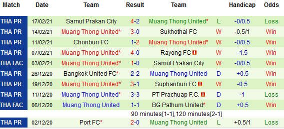 Ở vòng đấu gần nhất, Muang Thong đã bất ngờ phơi áo với tỷ số 2-4 trên sân của Samut Prakanm, qua đó đứt mạch 8 trận bất bại trước đó. Nhưng không vì kết quả này để vội đánh giá thấp đội khách.