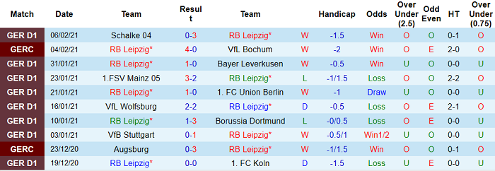 - Thống kê 10 trận gần nhất của RB Leipzig