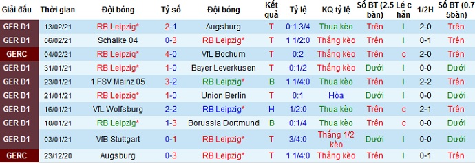 + Thống kê 10 trận gần nhất của RB Leipzig
