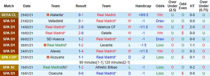 + Thống kê 10 trận gần nhất của Real Madrid