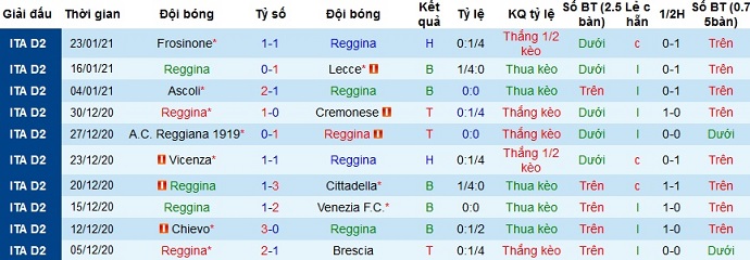 + Soi tỷ lệ kèo châu Á: Mặc dù đang đứng ngay sát nhóm cầm đèn đỏ nhưng với lợi thế được thi đấu trên sân nhà nên Reggina vẫn được đánh giá là đội cửa trên tuy kèo chấp chỉ ở mức -0,25.