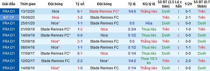 Mặc dù ở trận lượt đi Rennes đã vượt qua Nice ngay trên sân của đối phương với tỷ số 1-0. Thế nhưng trong lịch sử ở 4 lần gặp nhau trước đó khi được thi đấu trên sân nhà, chưa khi nào Rennes có thể giành được chiến thắng trước đối thủ với 2 trận hòa và 2 trận thua.