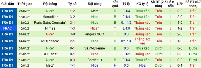Ở 5 trận gần nhất Nice chỉ thắng 2 trận và để thua 3 trận, tính cả trận thắng tại cúp quốc gia. Trên sân khách thành tích của đội bóng cũng không tốt hơn với 2 trận thắng, 3 trận thua sau 5 trận du đấu gần nhất.