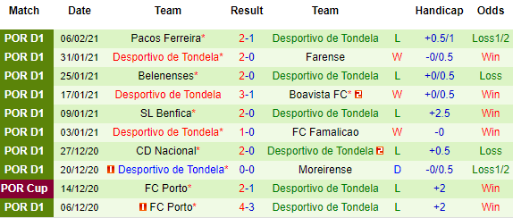 + Thống kê 10 trận gần nhất của Tondela