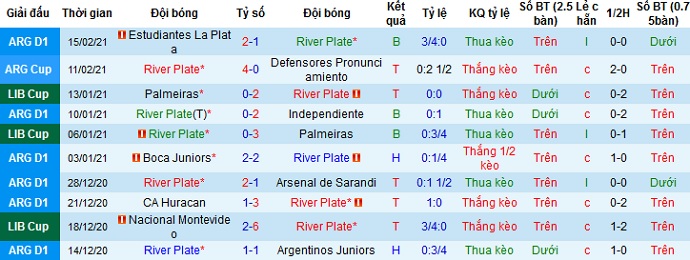 + Thống kê 10 trận gần nhất của River Plate