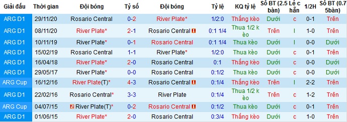 Tỷ lệ kèo River Plate vs Rosario Central
