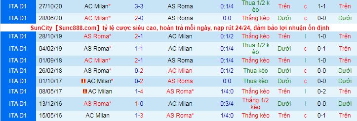 Tỷ lệ kèo Roma vs AC Milan