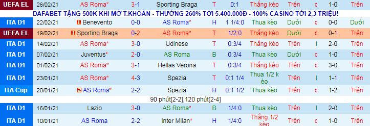+ Thống kê 10 trận gần nhất của Roma