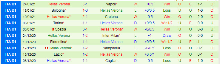 + Thống kê 10 trận gần nhất của Hellas Verona