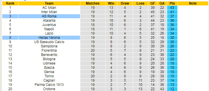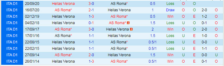Phong độ và thống kê đối đầu Roma - Hellas Verona gần đây: