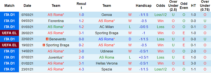 - Thống kê 10 trận gần nhất của Roma