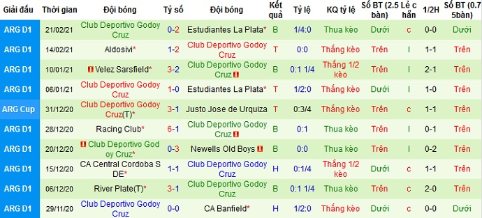 + Thống kê 10 trận gần nhất của Godoy Cruz