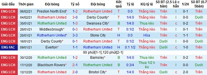 + Thống kê 10 trận gần nhất của Rotherham United
