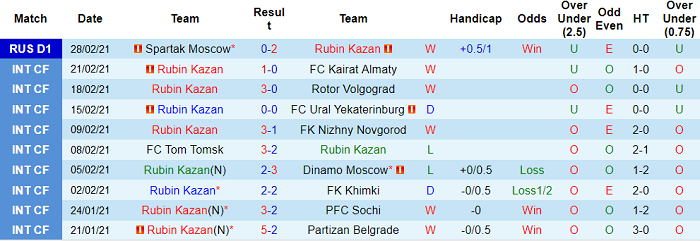 - Thống kê 10 trận gần nhất của Rubin Kazan