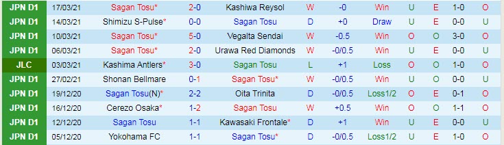 + Thống kê 10 trận gần nhất của Sagan Tosu